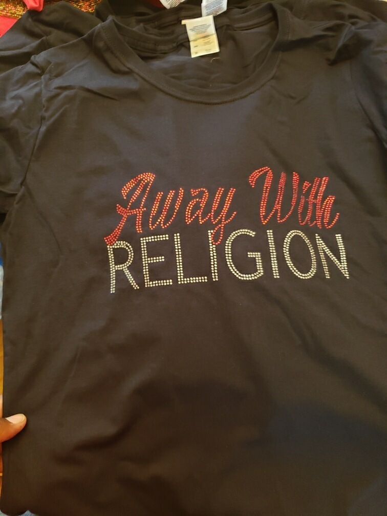 Away with Religion $30$30https://schema.org/InStockusdGGG Regenerated MinistriesGGG Regenerated MinistriesMattocksBlingTeesĀ (embedded In Rhinestone TShirt)Add to cartOne item @ $30 each Add to wishlist New wishlistShareShare on XShare on Facebook Copy linkCopy product URL